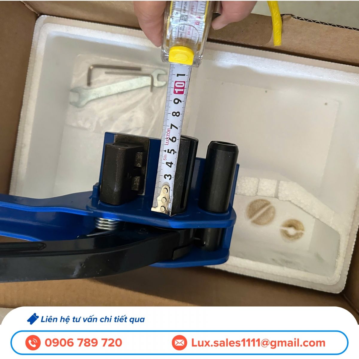 Thiết bị có khả năng làm việc với dây đai từ 19mm đến 50mm, phù hợp cho các loại đai composite bản rộng, thường dùng trong đóng kiện hàng cồng kềnh hoặc pallet lớn.